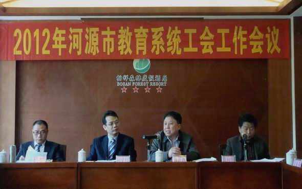 3月28我市召开2012年教育系统工会工作会议。市总工会副主席向更祥同志,市教育局党组副书记、副局长、市电大校长、市教育系统工会主席傅跃进同志以及来自各县区和市直学校教育工会主席参加了会议。会议由河源职业技术学院副院长、市教育系统工会副主席黄向明同志主持。